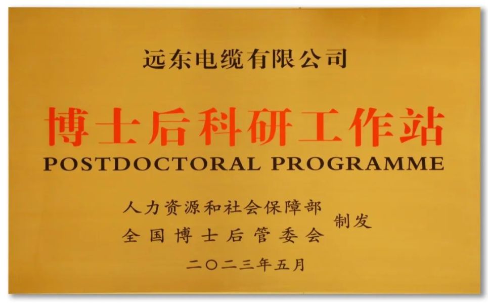 在國家各級博士后工作管理部門的大力支持和公司的高度重視下,遠東電纜“博士后科研工作站”于2023年5月經國家人事部、全國博士后管委會批準設立,并于5月24日在“2023太湖人才峰會”開幕式上接受授牌。